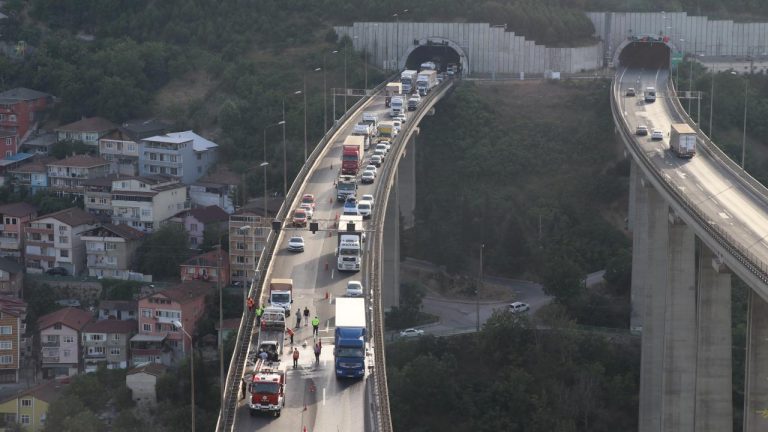 Anadolu Otoyolu’nda bir otomobilde çıkan yangın ulaşımı aksattı